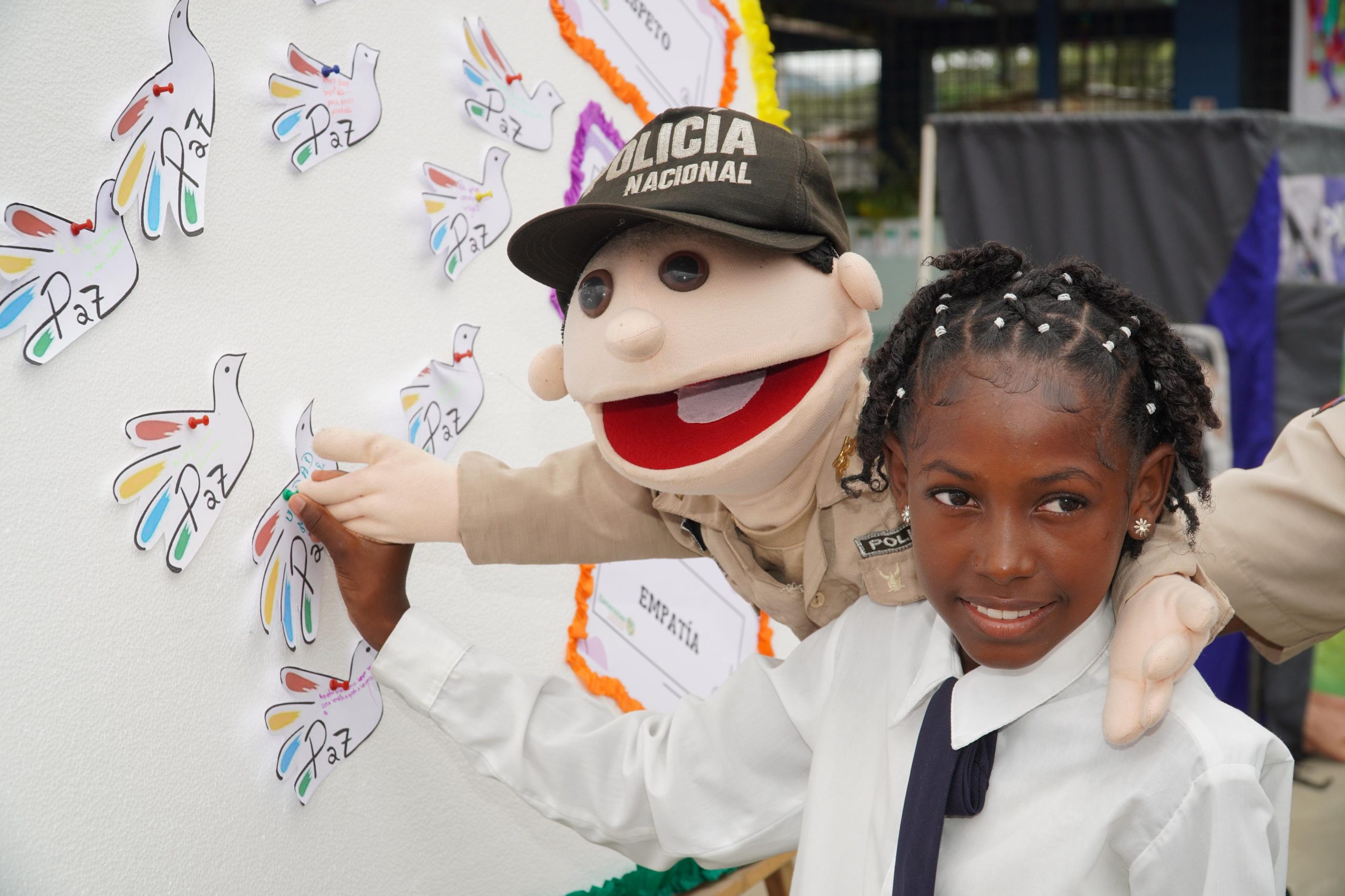 La jornada contó con la participación de Paquito Policía y Raulito, personajes que incentivaron a los más pequeños a vivir en paz y sin violencia, reforzando el mensaje preventivo de la Policía Nacional.